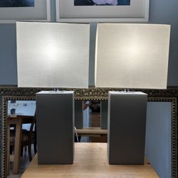 Pair Modern 21 in TABLE LAMPS Grey Leather Square White Fabric Shade$40Clark, NJ