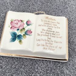 Vintage Ceramic Figurine Open Book Shaped Tribute To Mothers Thoughtful Words Mother’s Day Gift $5Garden City P, NY