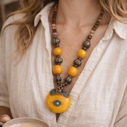 Vintage Boho Statement Necklace with Faux Amber Pendant$24Hoboken, NJ