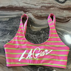 L.A. Gear for Forever 21 Pink with Green Stripes Sports Bra Bikini Top Size Small $20New York, NY