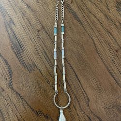 Gold Toned Boho Beaded Necklace with Oval Textured Pendant and Tassel – 17.5” - Excellent$15Bergenfield, NJ