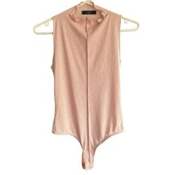 21 Saints Womens S Bodysuit Pink Ruffled Mock Neck Textured Semi Sheer T458 Chic$10Greystone Park, NJ