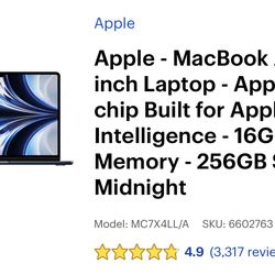 MacBook Air M2 chip 256gb midnight blue$650The Bronx, NY