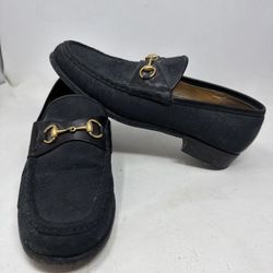 Gucci Horsebit Loafers Black Canvas Monogram Women's 8.5 B Leather Slip On Shoes$160Garfield, NJ