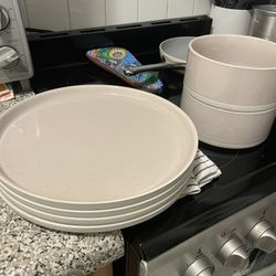Set of speckled ceramic dinner plates + bowls$65Peck Slip, NY