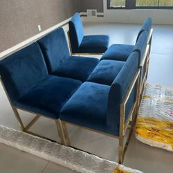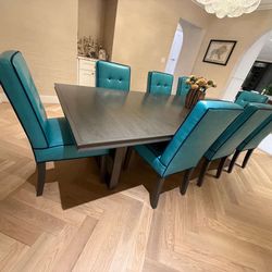 Set of 8 gorgeous Teal blue parsons dining chairs with navy blue trim $1,600Lawrence, NY
