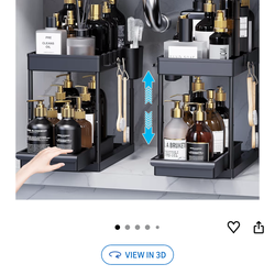 Under Sink Organizer, Height Adjustable, 2 Pack Black Under Bathroom Cabinet Storage with Hooks Hanging Cup, 2 Tier Sturdy Large Capacity Pull Out Dra$20New York, NY