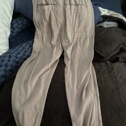 One Step Up, pink striped romper with open-shoulder sleeves and a white crochet trim. Size 4t$10Teaneck, NJ