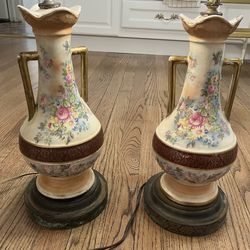 Pair of vintage MCM porcelain lamps with flower design$40Cliffside Park, NJ