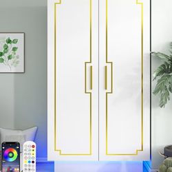 White double door wardrobe with gold trim & LED light$130New York, NY