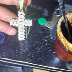 Vvs diamond Cross Passes Diamond Tester Gold Plated Over 925 Silver $500Albuquerque, NM