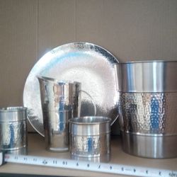 5 Piece Hammered Steel Bar Or Bath Pitcher Set $50Unm, NM