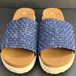 Bernie Mev Capri Slide Sandals Women's Size 35 US 5 Navy Blue Woven Stretch New$25Albuquerque, NM