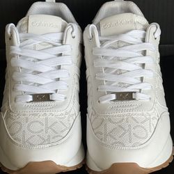 Calvin Klein Carlla Women's Sneakers Size 10 White Logo Athletic Shoes $40Albuquerque, NM
