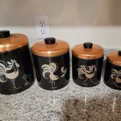 Vintage 1950s Ransburg Rooster Kitchen Canister Set With Lids $95Unm, NM