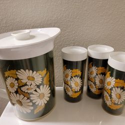 Vintage Thermo Serv Pitcher Insulated Tumblers $40Unm, NM