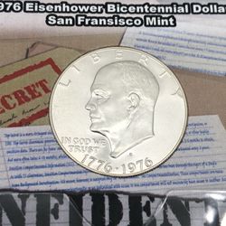 Uncirculated Bicentennial 1776 to 1976 40% Silver Eisenhower (IKE) Dollar. San Francisco Mint$20Albuquerque, NM