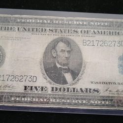 1914 Federal Reserve Blue $5 Lincoln $145Los Lunas, NM