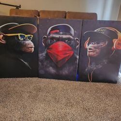 Large Canvases (3) Cool Monkey "Hear no evil, speak no evil, see no evil"$140Albuquerque, NM