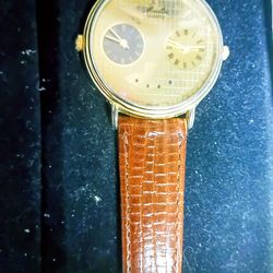 A "Very Rare" Vintage Moulin mens 37mm round face, gold tone, dual time world map watch$125Albuquerque, NM