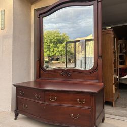 Solid Wood Bow Front Dresser with Mirror – Vintage Mahogany w/ Wood Casters$325North Albuquerque Acres, NM