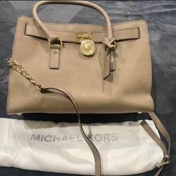 MK MICHAEL KORS handbag purse HAMILTON DARK DUNE TAUPE GOLD SAFFIANO LEATHER SATCHEL BAG$100Albuquerque, NM