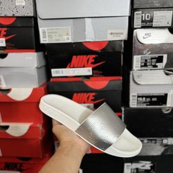 DS Louis Vuitton White & Silver Monogram Slides size 9.5M$400Los Rnchs Abq, NM