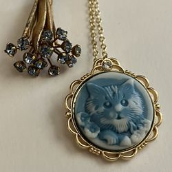 2 x Unique Charm Pendant Necklace Jewelry Lot - Cat Kitten + Antique Rhinestone Bouquet$20Albuquerque, NM