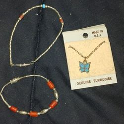 vintage sterling silver liquid and necklace with turquoise beads With Matching Earrings$60Albuquerque, NM