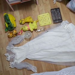 miscellaneous vintage Items , 1970 Wedding Dress , Vintage Carnival Stuffed Animals, Glassware ,And Plastic ware$45Albuquerque, NM