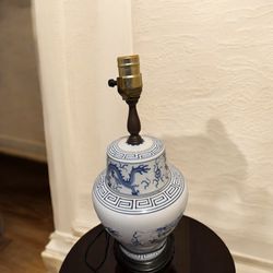 Vintage Blue White Porcelain Oriental Dragon Table Lamp Wood Base 18 Inches$200Rio Arriba County, NM