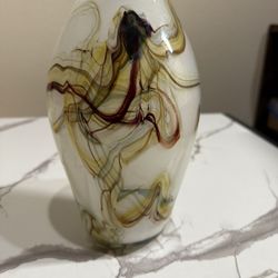 hand-blown art glass vase with swirling patterns in yellow, brown, and maroon $100Rio Arriba County, NM