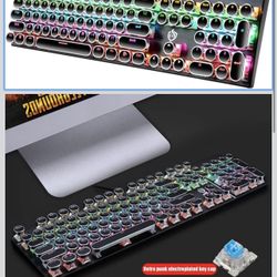 YSCP Typewriter Style Mechanical Gaming Keyboard Rainbow Backlit Wired with Blue Switch Retro Round Keycap 104 Keys Keyboard (L-Black)$30Las Vegas, NV