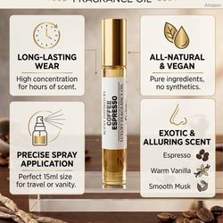 COFFEE ESPRESSO Luxury Fragrance Oil Spray – 15 ml Travel Size, Long-Lasting Dark Roast & Warm Vanilla Scent Wake Up Your Senses with Every Spritz Ind$10Las Vegas, NV