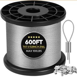 316 Stainless Steel Cable, 600FT 1/32IN Wire Rope With 150Pcs Aluminum Sleeves Stops, For String Lights Hanging, Clotheslines, Trellis Wire$15Las Vegas, NV