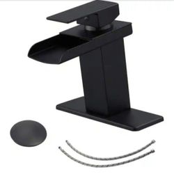 Single-Handle Single-Hole Brass Waterfall Bathroom Sink Faucet with Pop Up Drain Kit and Deckplate in Matte Black$60Las Vegas, NV