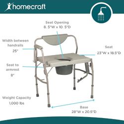 Homecraft Deluxe Bariatric Drop Arm Commode, 1000 lb Weight Capacity, Extra Wide Seat with Adjustable Height, Bedside or Over Toilet Use, Drop Arms fo$75Las Vegas, NV