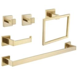 BWE 5-Piece Bath Hardware with Towel Bar Towel Hook Toilet Paper Holder and Towel Ring Set in Brushed Gold$25North Las Vegas, NV
