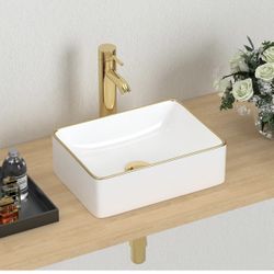 New open box 14.5'' x 10.6'' Small Vessel Sink Bathroom Above Counter White Porcelain Ceramic Rectangular Sink Bowl Gold Trim$50Las Vegas, NV