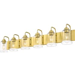 zeyu 44 Inch Brushed Gold Bathroom Light Fixtures, 6 Lights Vintage Wall Light, Modern Vanity Light with Clear Glass Shade, ZSL72B-6W BG$70Henderson, NV