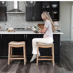 Brand new Set of 2 Maven Line Adrien Saddle and Bar Stool in Natural Finish Modern Bar chairs $98Las Vegas, NV