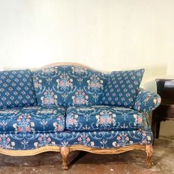 Vintage Blue Floral Brocade Sofa with Carved Wood Trim((Free Delivery)) $150North Las Vegas, NV