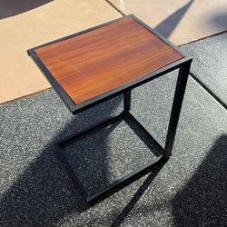 This C-shaped end table features a dark wood grain tabletop and a black steel frame, typical of modern industrial-style furniture$15Henderson, NV