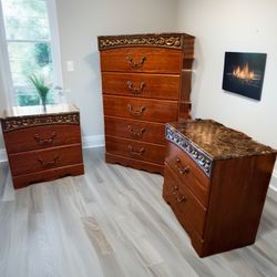 FREE DELIVERY Vintage Marble-Top Bedroom Set – Ornate 3-Piece Dresser & Nightstands $349Las Vegas, NV