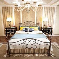 Queen-Size Wrought Iron Bed Frame with Vintage Headboard & Footboard - BRAND NEW!