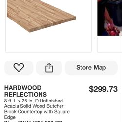 HARDWOOD REFLECTIONS 8 ft. L x 25 in. D Unfinished Acacia Solid Wood Butcher Block Countertop with Square Edge Store$199Las Vegas, NV