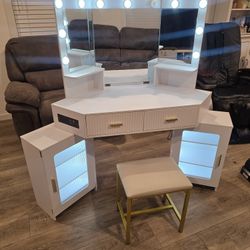 Beautiful LED White & Gold Corner Vanity With Storage Drawers$180Henderson, NV
