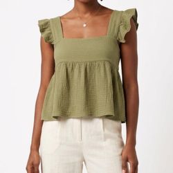 Kourt Sage Green Cotton Gauze Babydoll Top XS Cottagecore Ruffle$38Las Vegas, NV