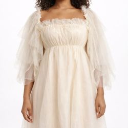 SELKIE STYLE Coquette Cream Tulle Ruffle Puff Sleeve Empire Mini Dress M $50Las Vegas, NV