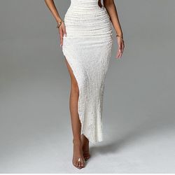 Babyboo Aphrodite Cream Ribbed midi dress with High Side Slit$80Henderson, NV